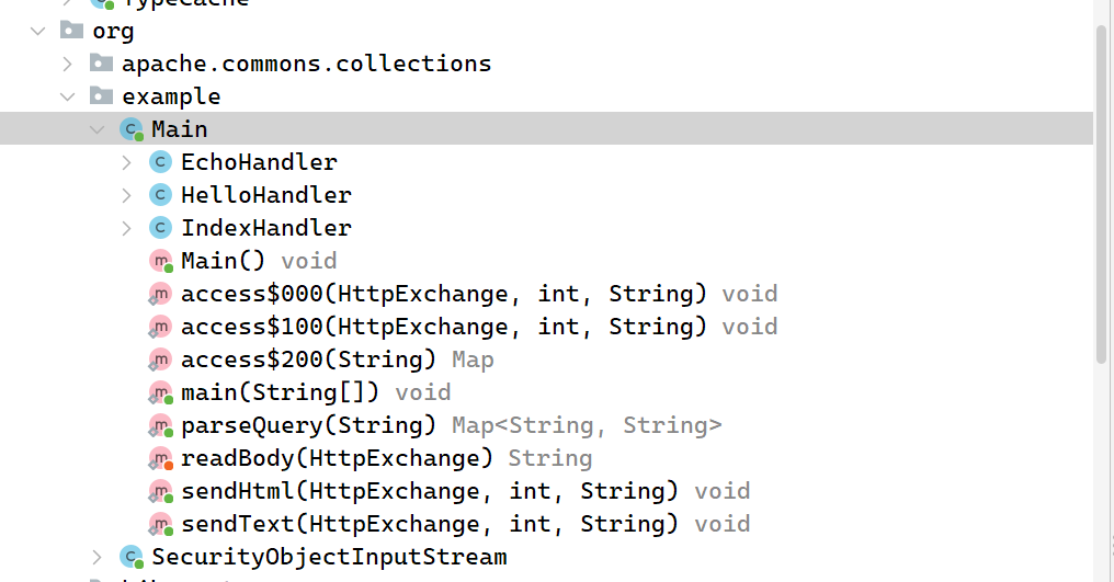 /example/Main.class */ public class Main { public static void main(String[] args) throws Exception { HttpServer server = HttpServer.create(new InetSocketAddress(8080), 0); server.createContext(”/”, new IndexHandler()); server.createContext(“/hello”, new HelloHandler()); server.createContext(“/api/echo”, new EchoHandler()); server.setExecutor((Executor) null); System.out.println(“Server started at http://localhost:8080”); server.start(); } package org.example;