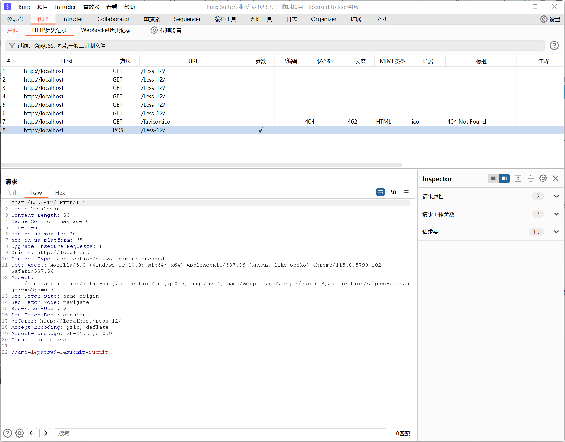 简单抓一下包,还是 uname=1&passwd=1&submit=Submit 。