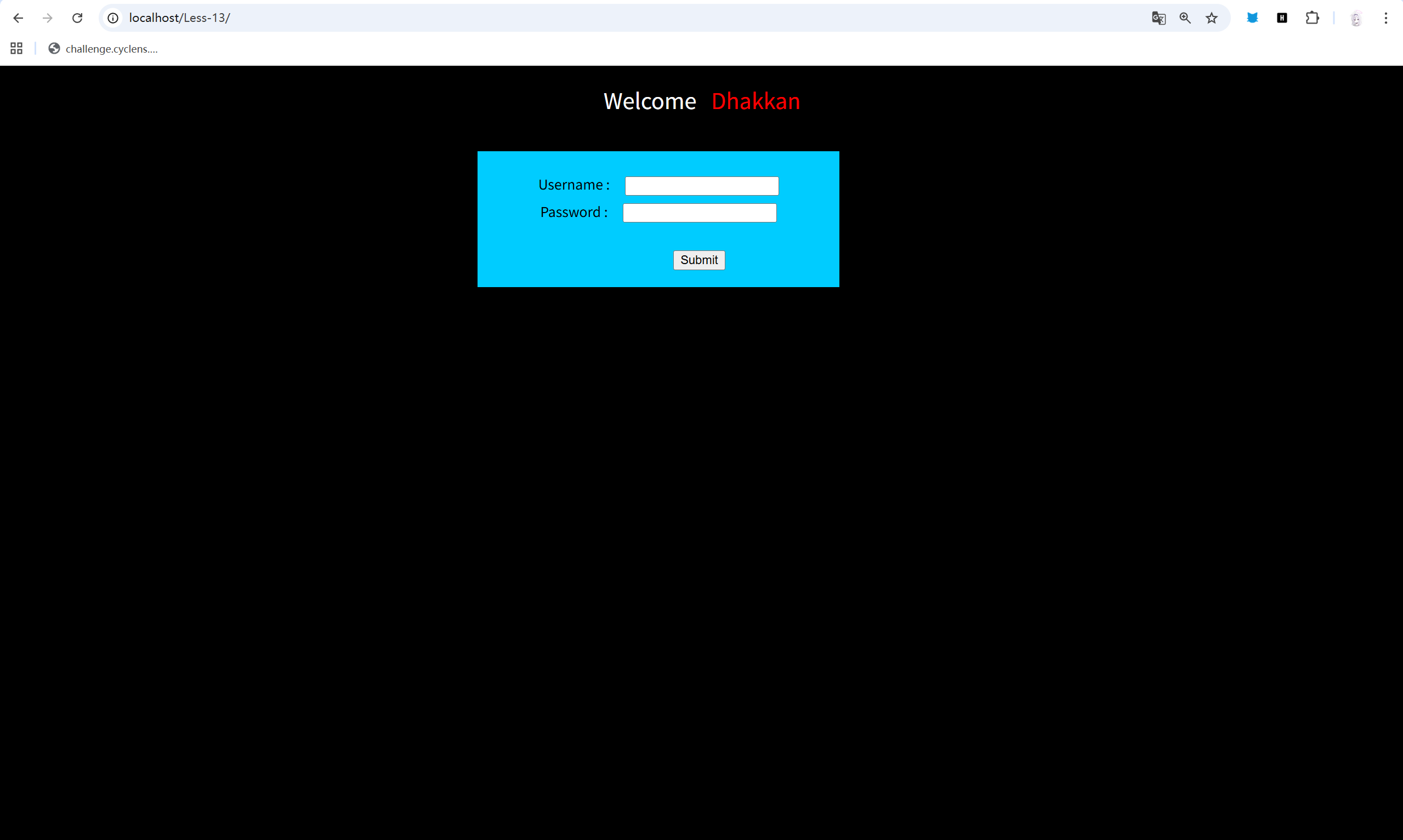 Welcome DhakkanYour Login name:securityYour Password:3确认库名,security。