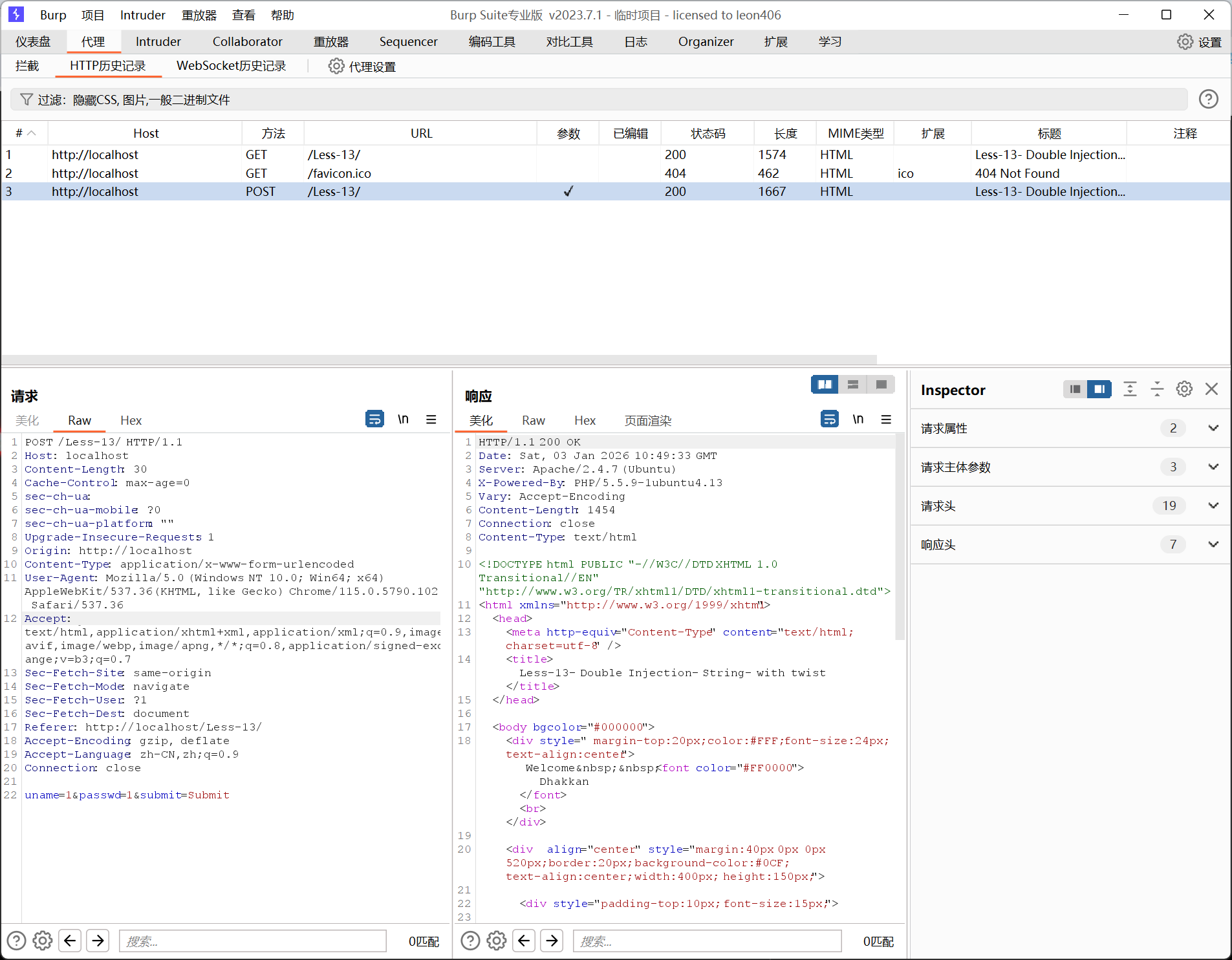 Welcome DhakkanYour Login name:2Your Password:3发现,2是回显在name,3是回显在Password。